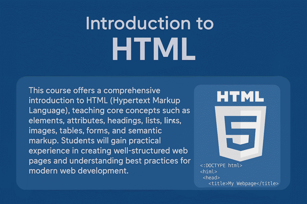 This course offers a solid foundation in HTML, the core markup language used to create and structure content on the web. Perfect for beginners, it guides students through the basic syntax and structure of HTML, enabling them to build simple, well-structured webpages from scratch.